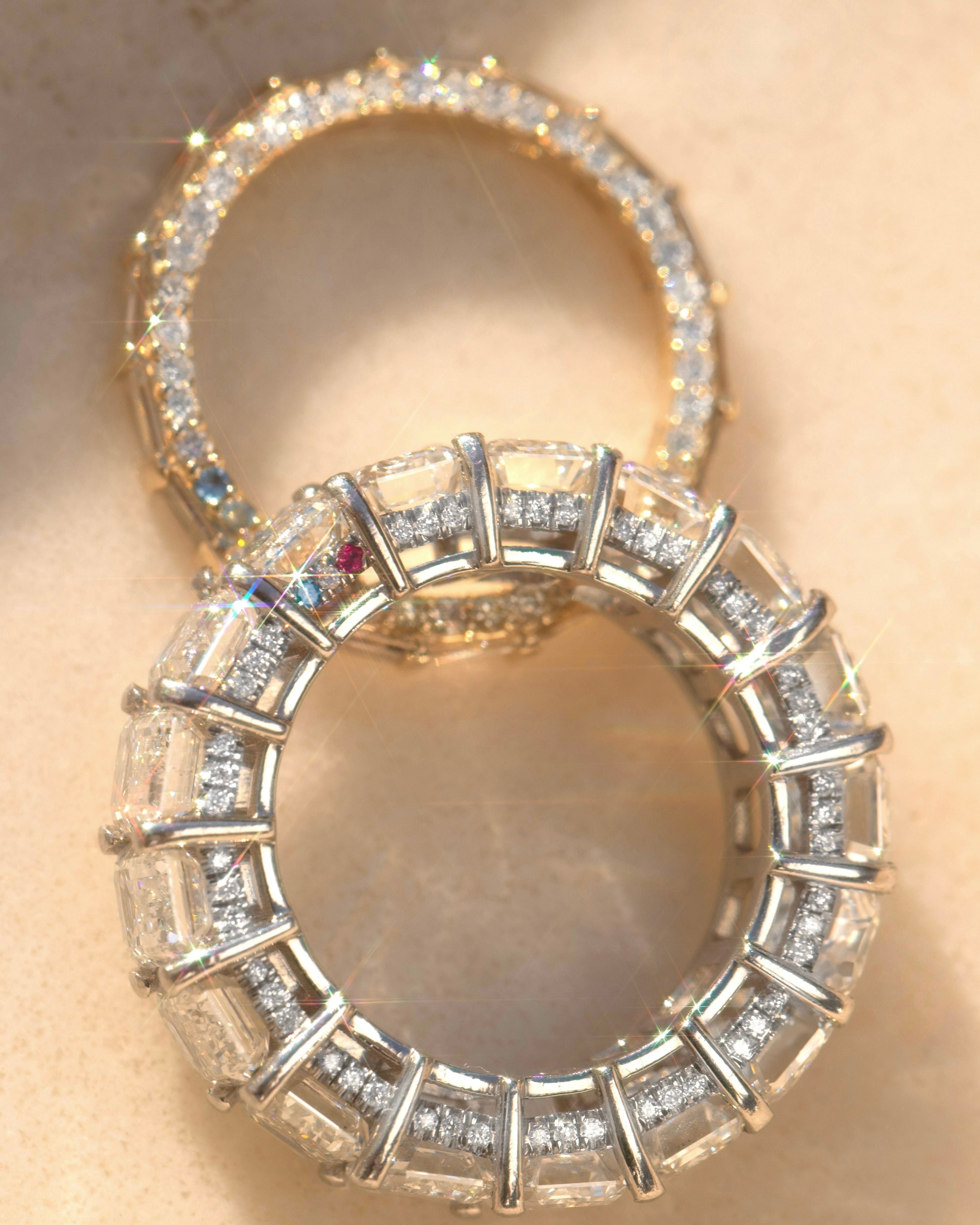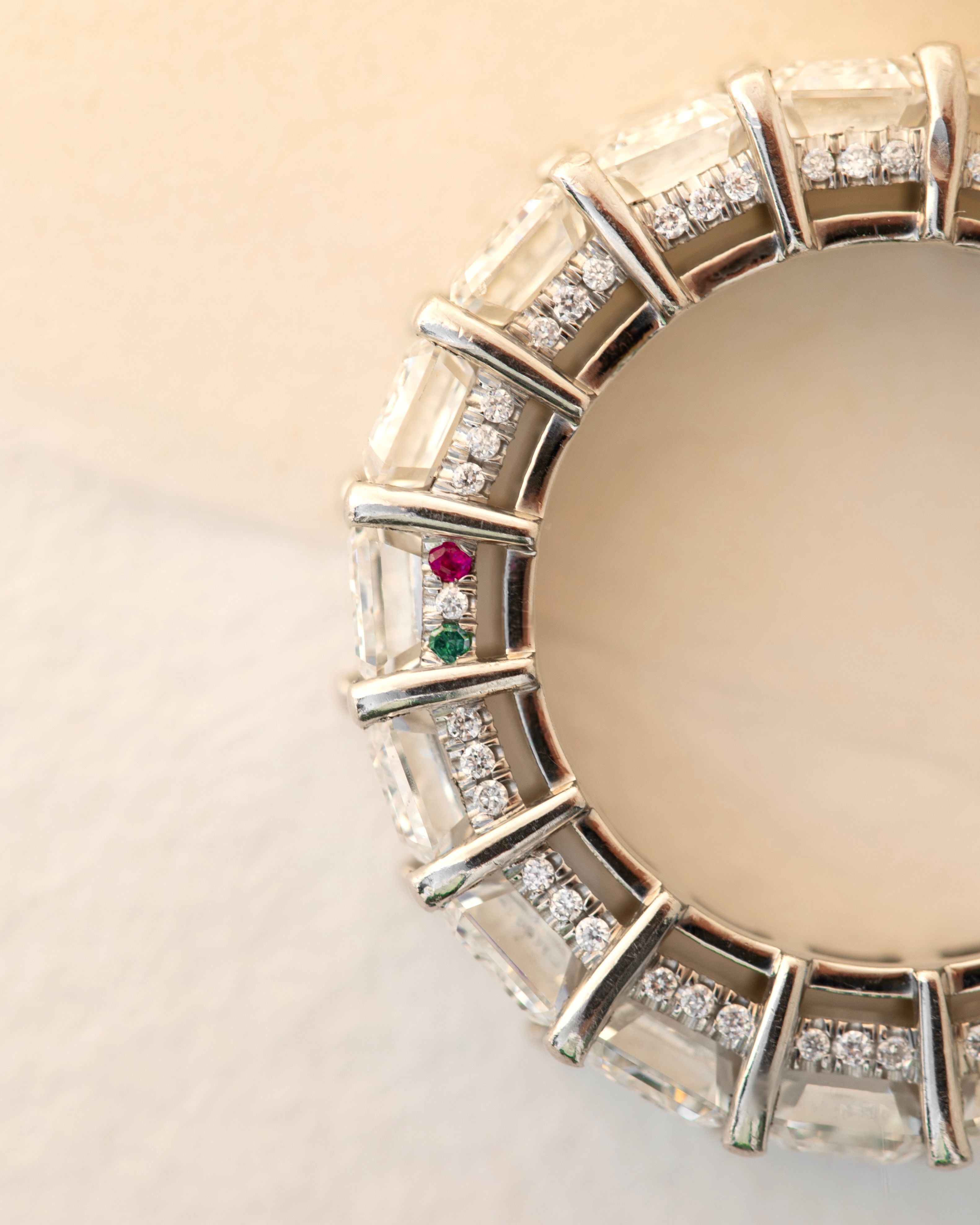 Emerald Cut Diamond Eternity Band with Pave Diamond and Birthstones