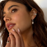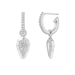 A refined balance of edge and elegance. Each 1ct step cut pear shape diamond floats effortlessly from a pavé-set, beveled hoop, offering a fresh take on timeless sophistication.