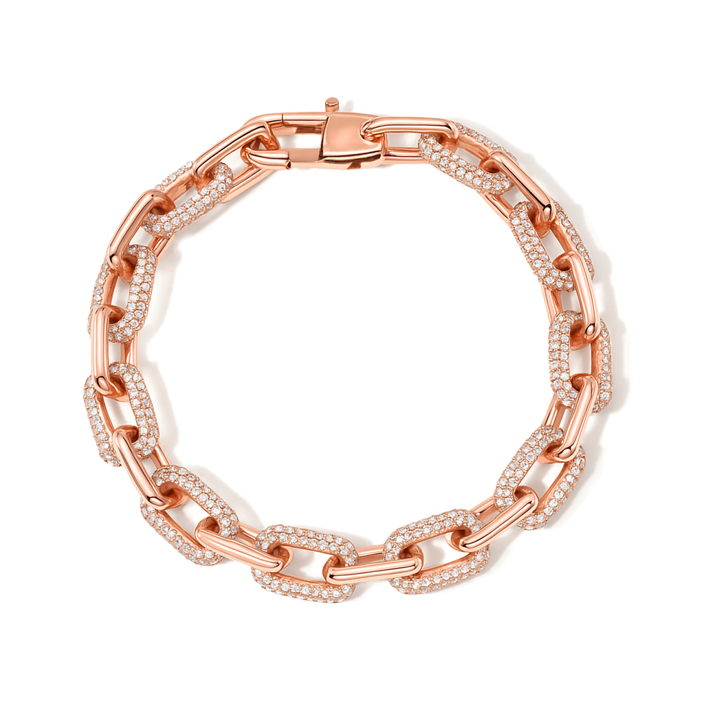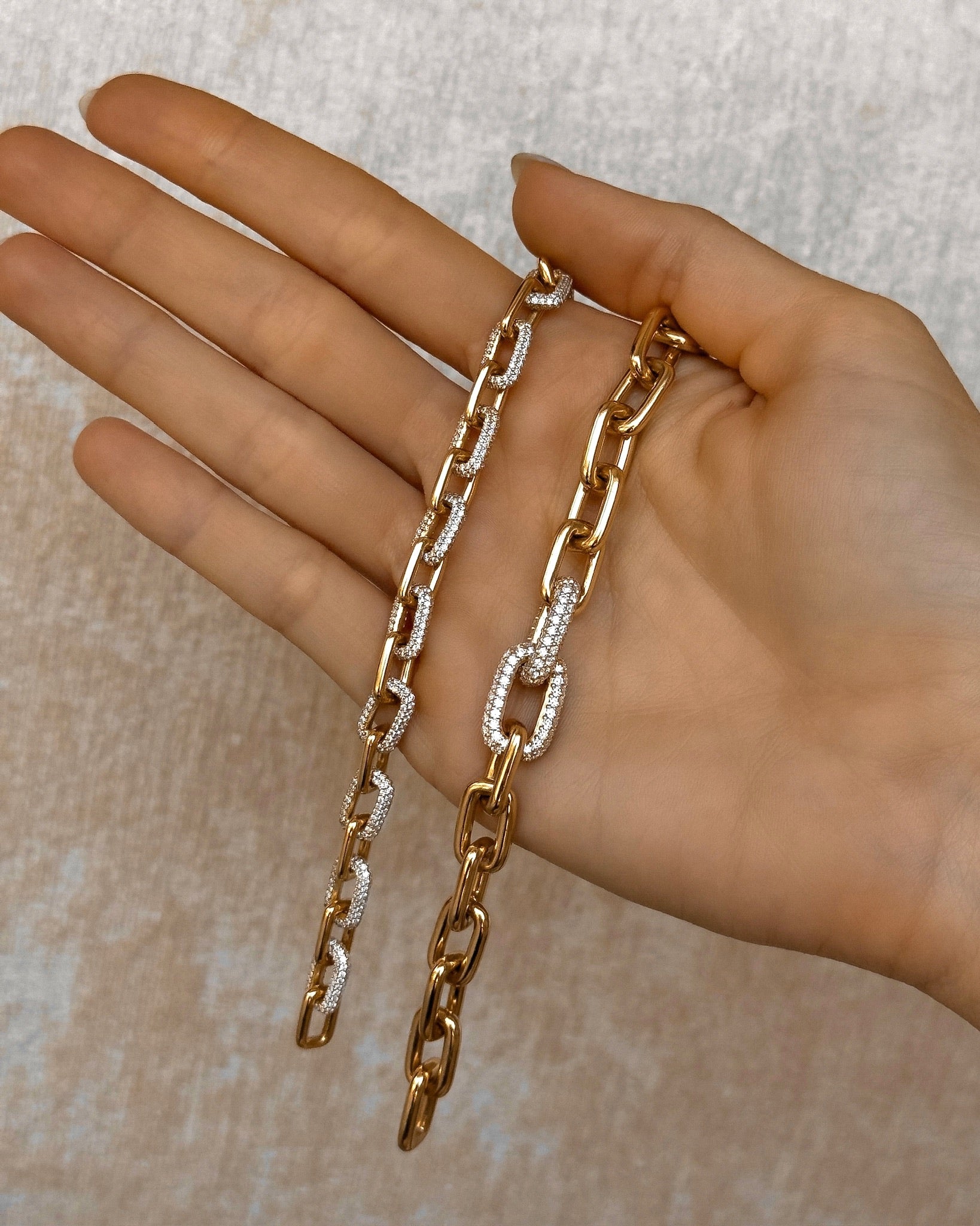 Greer Small Link Bracelet, Alternating Pave Diamond and Solid Gold Links