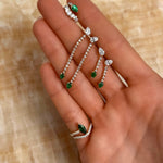 18k, .35ct round diamonds, .50 pear diamonds, .34ct emerald